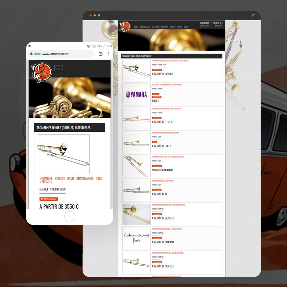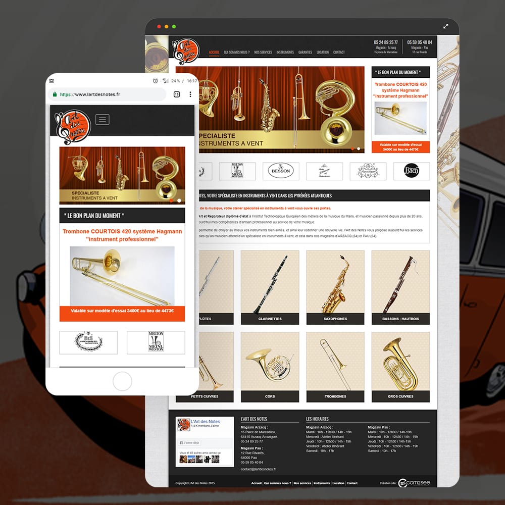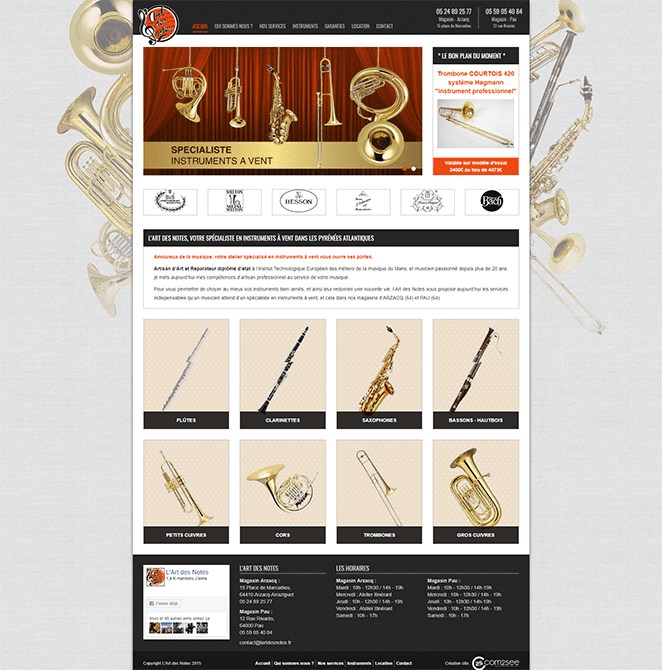 L’Art des Notes est un magasin et atelier de réparations d’instruments de musique. Pour présenter son atelier et proposer son catalogue d’instruments neufs et d’occasion à la vente, ce luthier nous a confié la réalisation de son site internet.