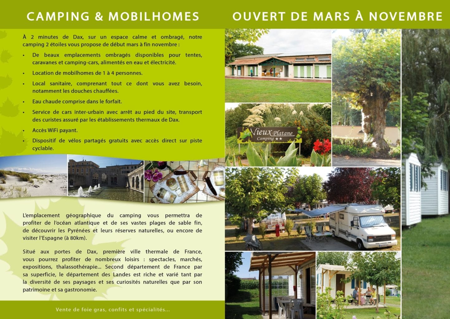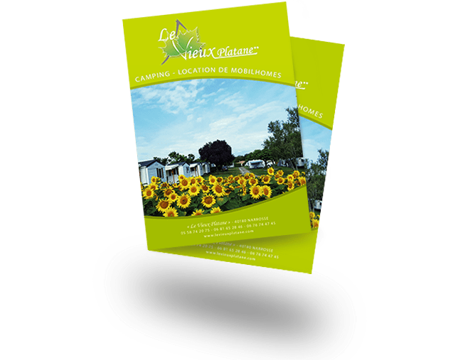 Pour leur nouvelle saison 2017, le Vieux Platane, Camping landais, nous a confié la mise au goût du jour de leurs plaquettes et flyers de communication.