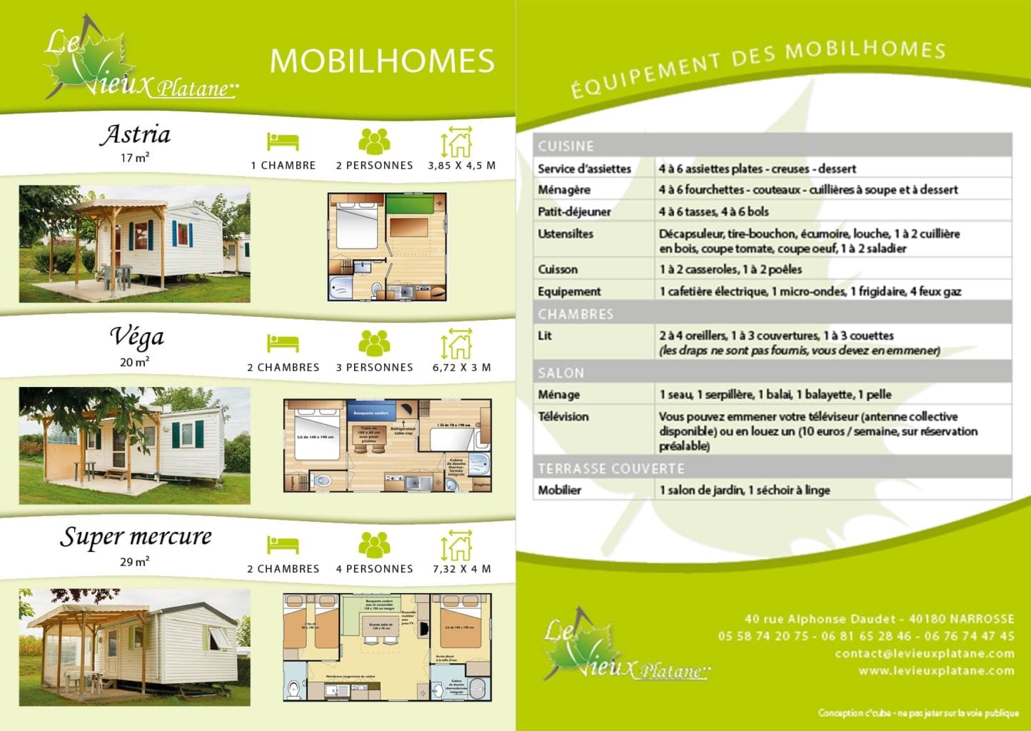 En s'adaptant à la demande de leurs clients, nous avons séparés les informations de présentation générale, description des mobil-homes et tarifs sur différents documents.